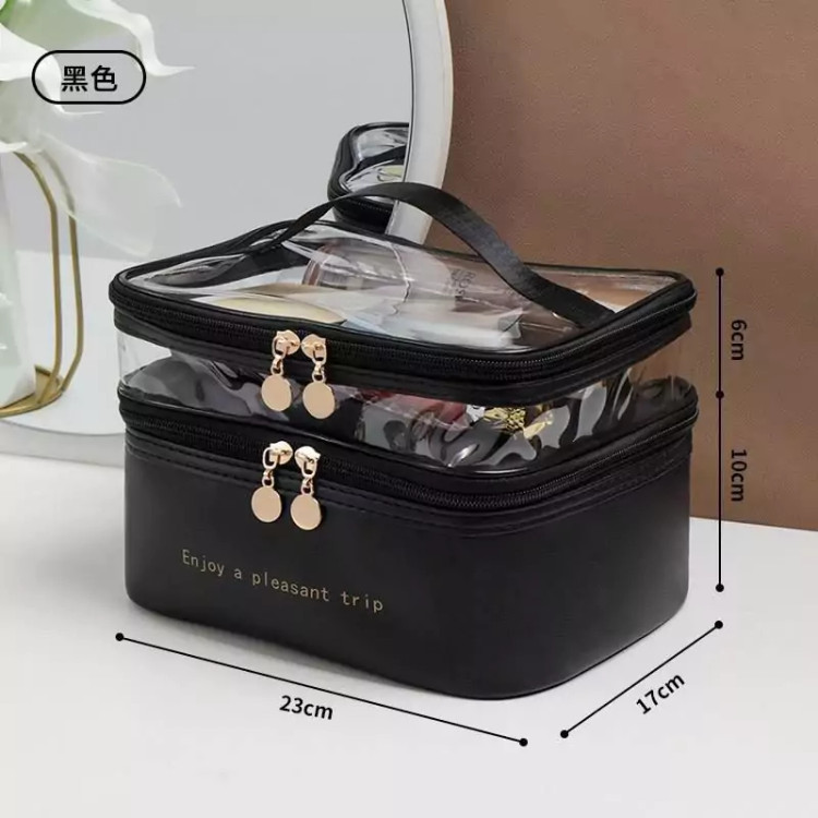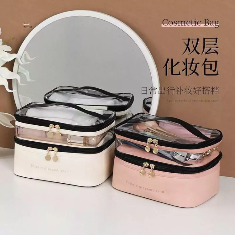 کیف آرایشی دو طبقه چرمی