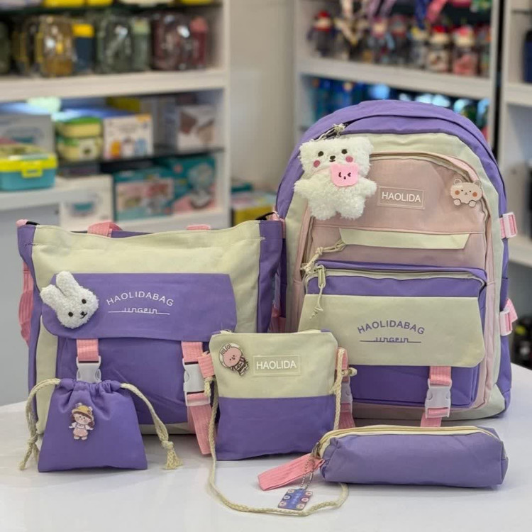 ست کیف و کوله اسپرت 5 تیکه خرس دار جنس برزنت ضد آب وارداتی ارسال رایگان رنگ بنفش